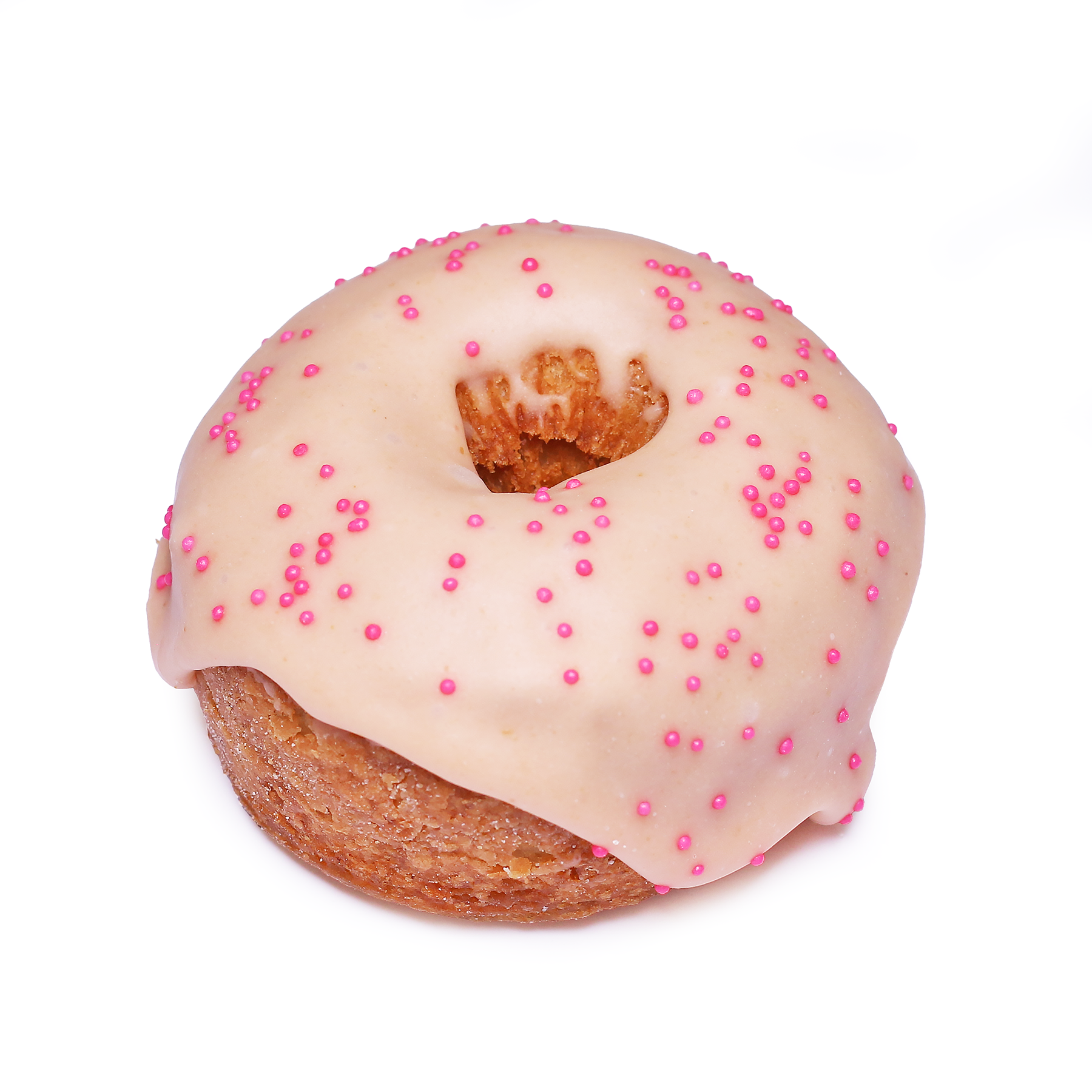 Our wheat-free lemon dough dipped in a sweet pink guava glaze. Garnished with pink sprinkles.