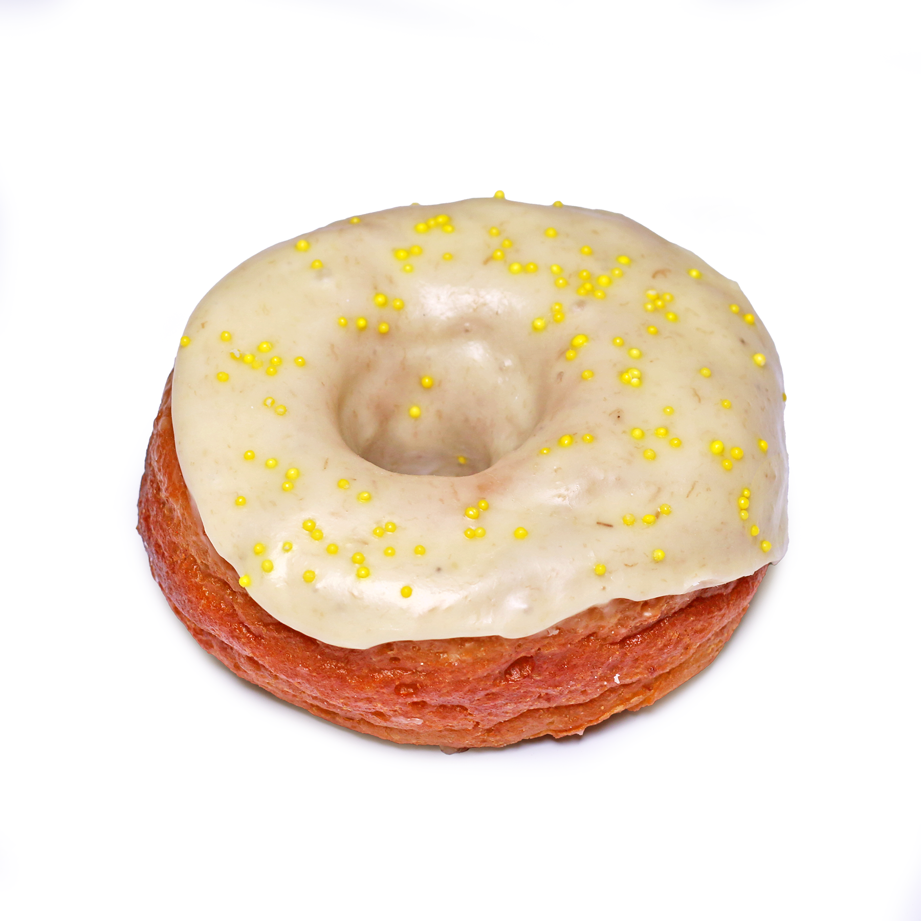 Our classic vegan dough dipped in a roasted banana and rum glaze. garnished with yellow sprinkles.